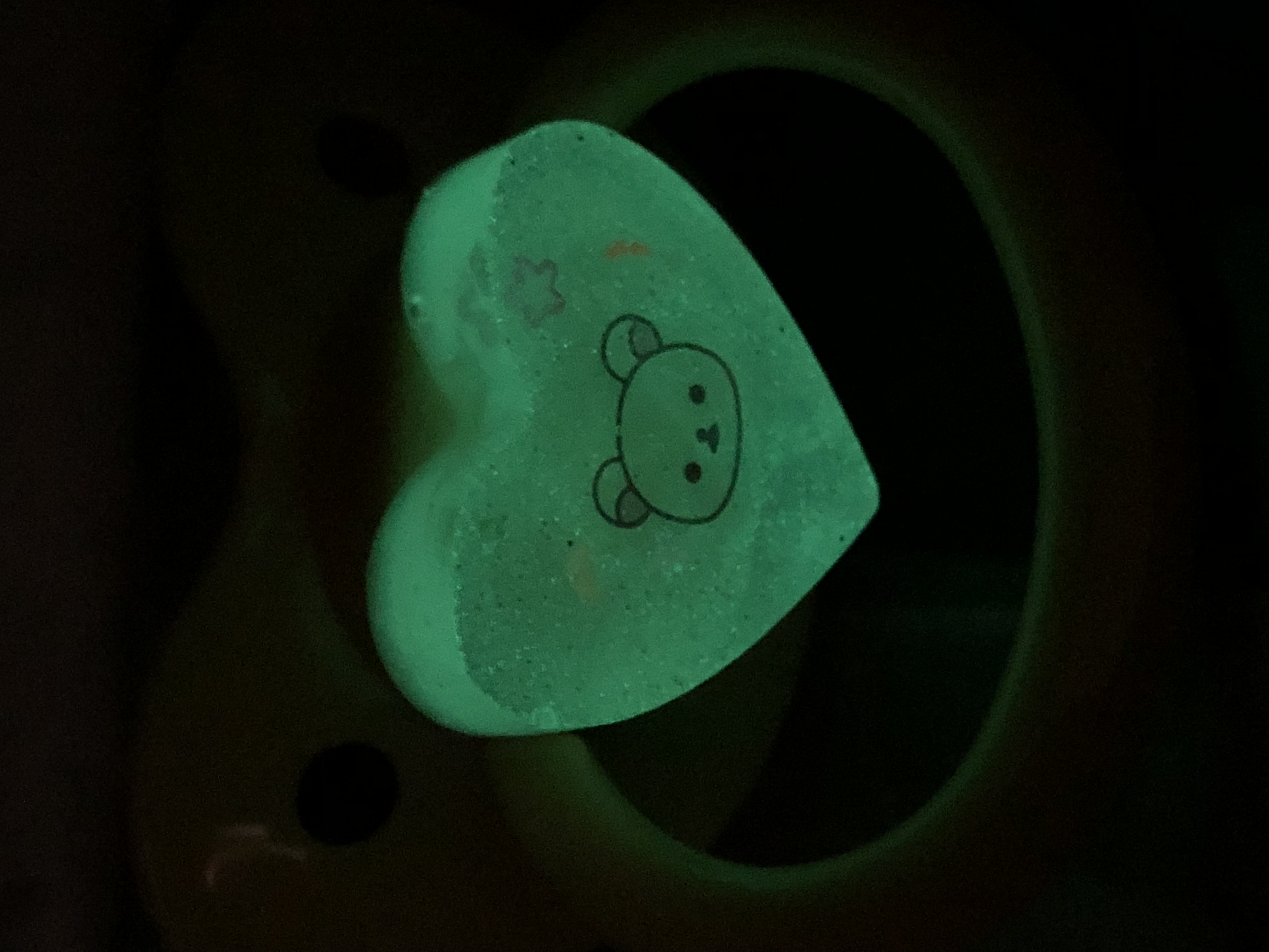 Ever wanted a paci that’s cute even in the dark?!? Well look no further, this one of a kind paci is made with glow in the dark component to make the front light up in darkness. (After being exposed to light of course)