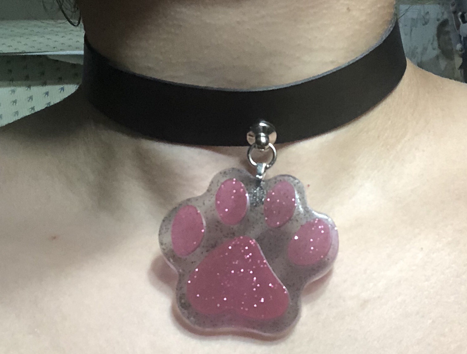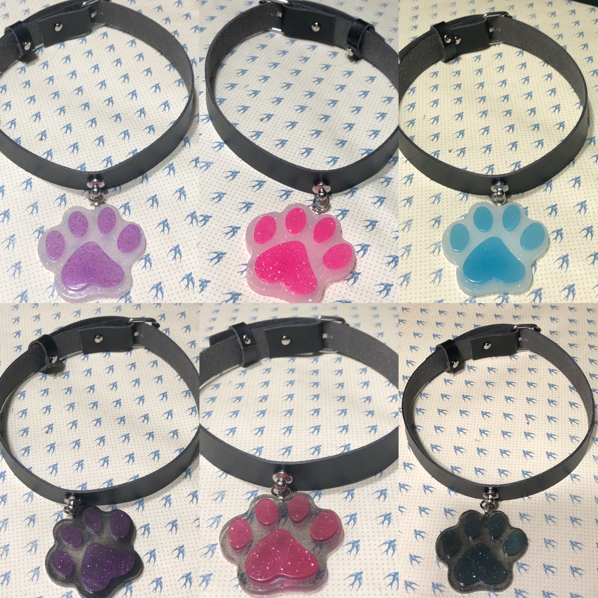 Ddlg/Abdl Kitten/Puppy paw leather collar (Glows in the dark)