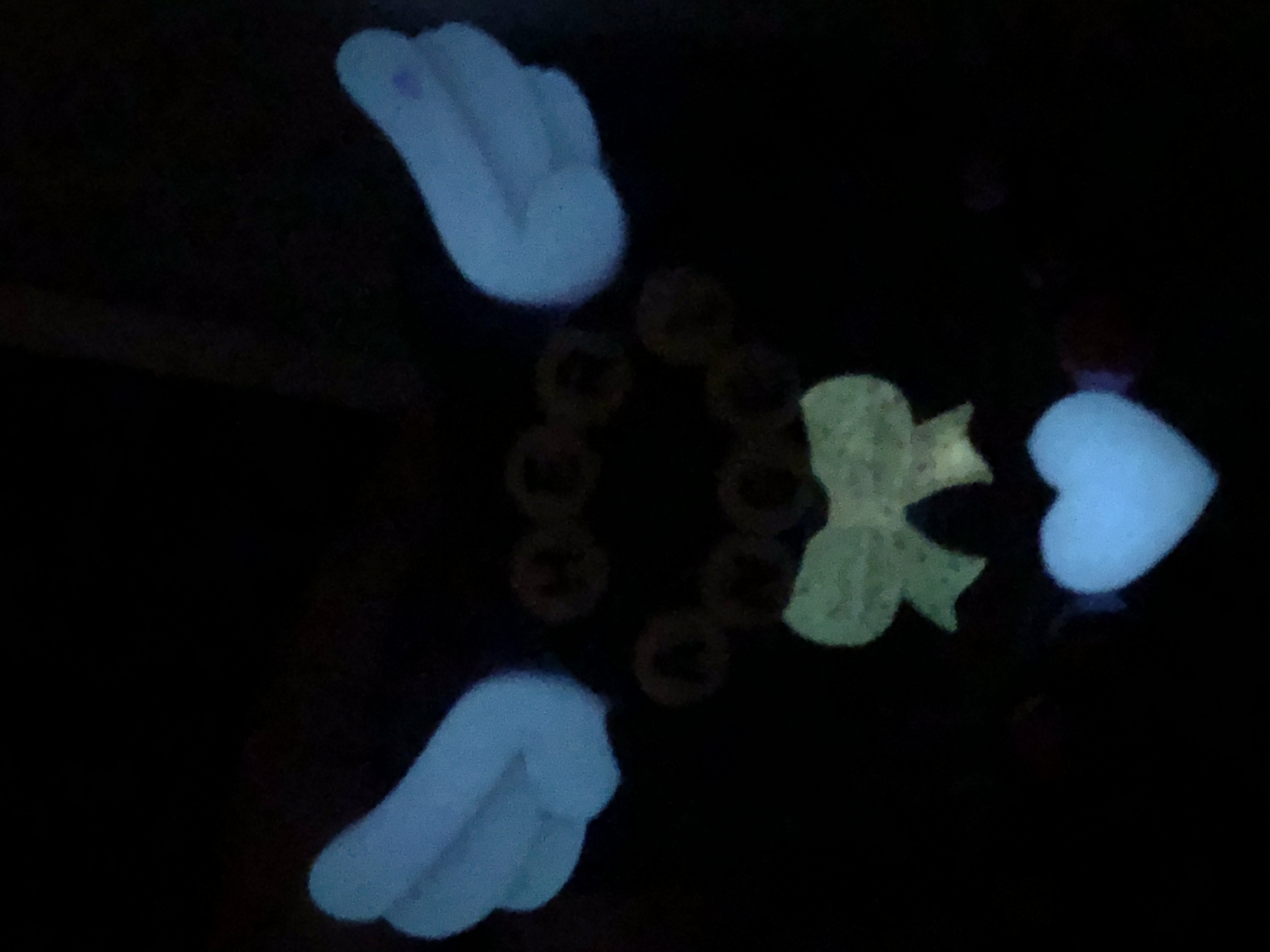 Ever wanted a paci that’s cute even in the dark?!? Well look no further, this one of a kind paci is made with glow in the dark component to make the front and hearts on the sides and front light up in darkness. (After being exposed to light of course)
