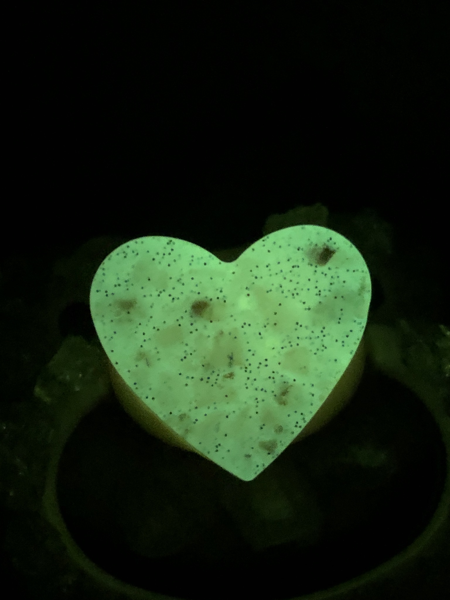 Ever wanted a paci that’s cute even in the dark?!? Well look no further, this one of a kind paci is made with glow in the dark component to make the front and hearts on the sides and front light up in darkness. (After being exposed to light of course)