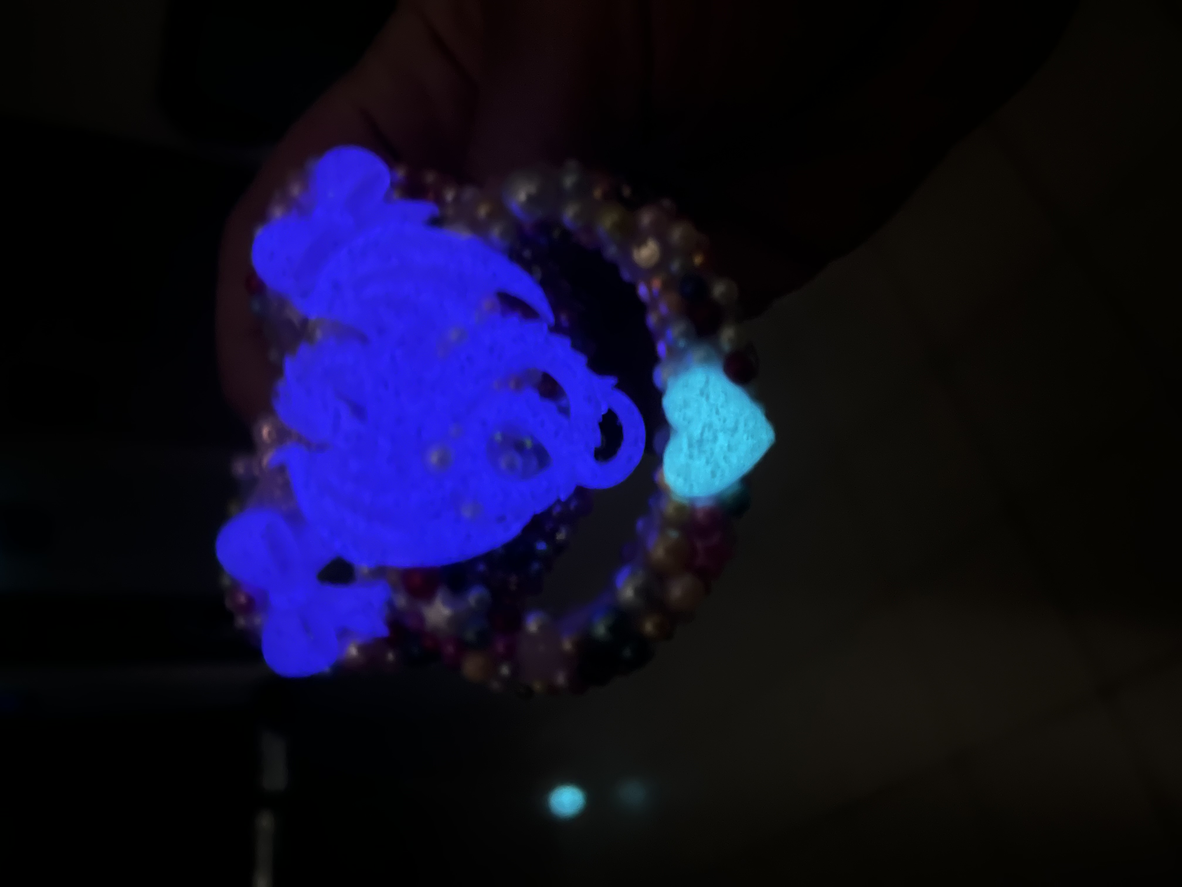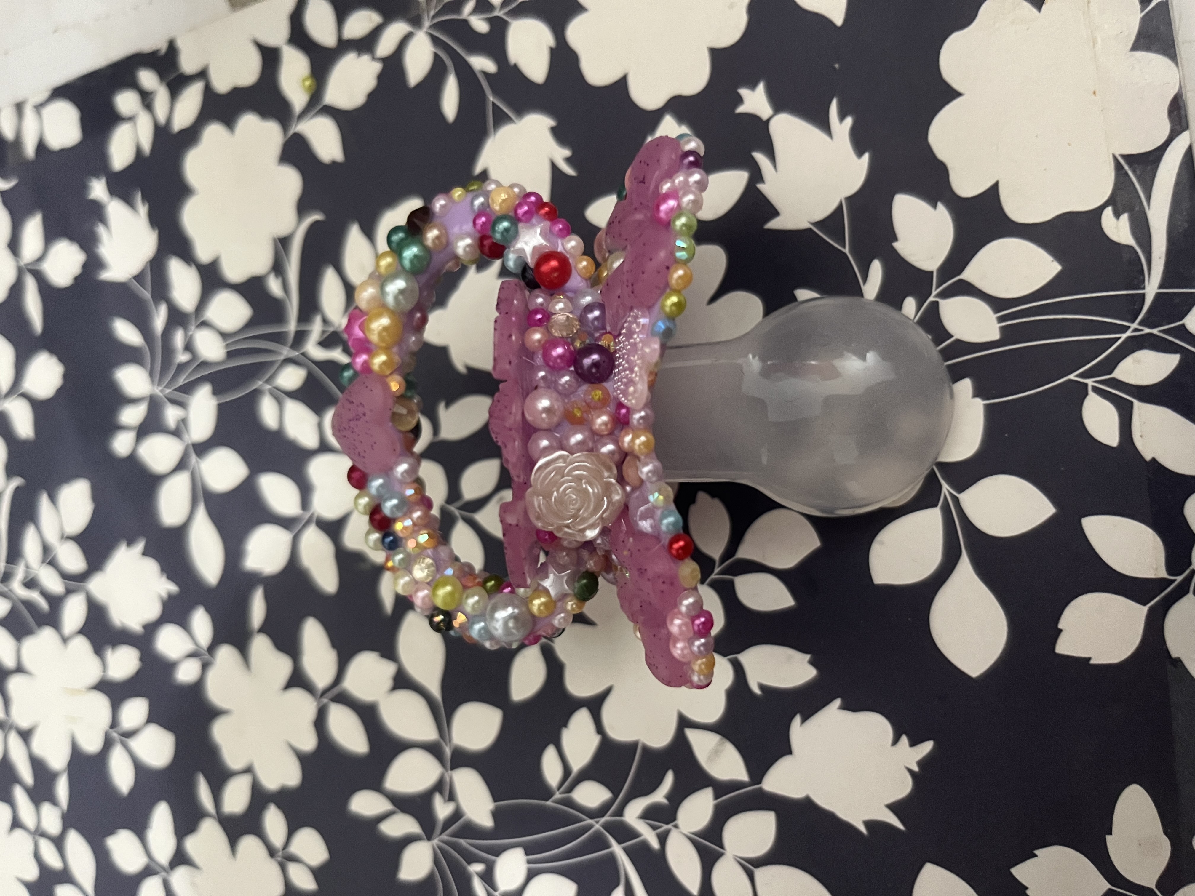 Ever wanted a paci that’s cute even in the dark?!? Well look no further, this one of a kind paci is made with glow in the dark component to make the front and sides on the sides light up in darkness. (After being exposed to light of course)